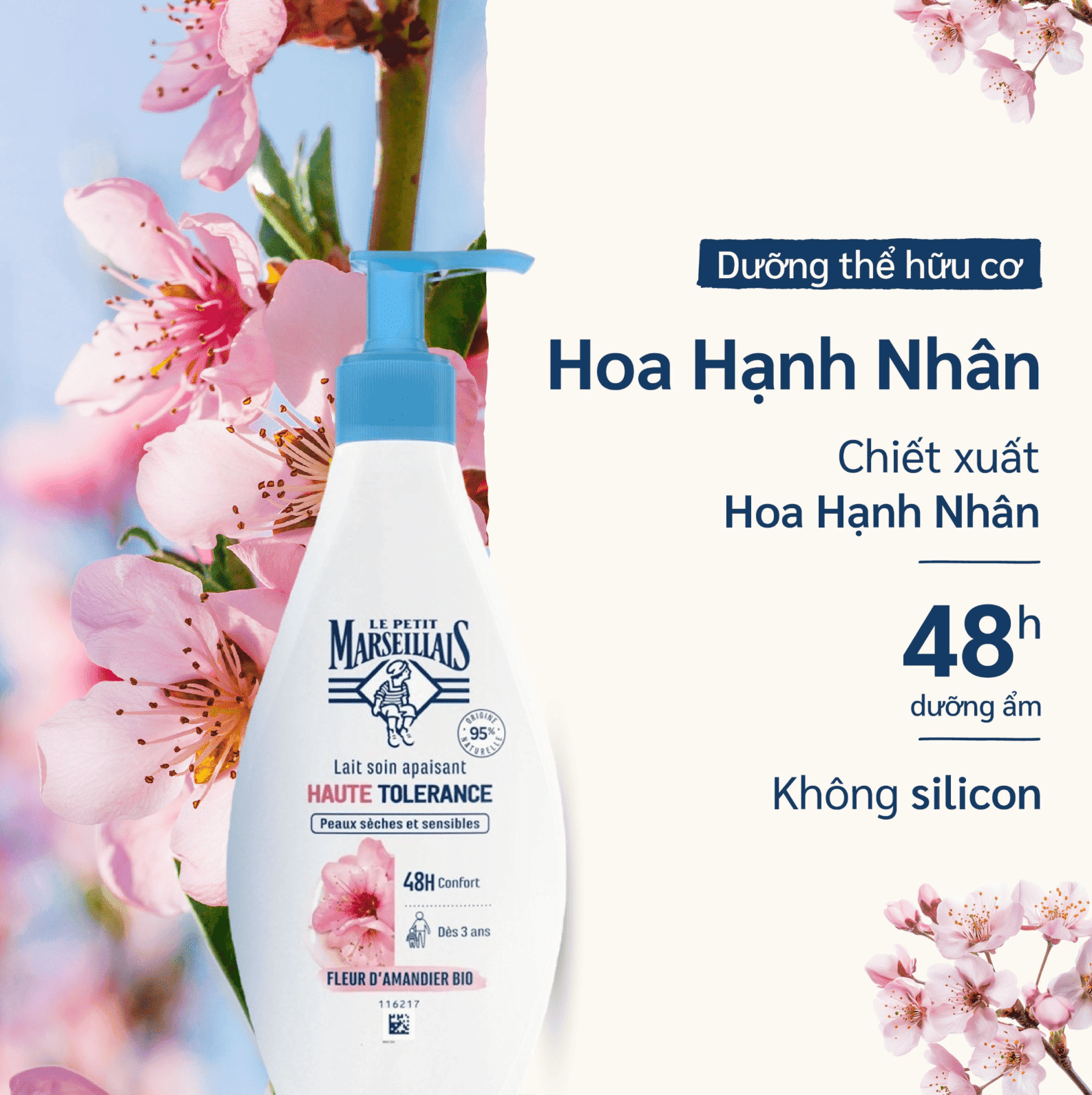 Fleur D'Amandier - Sữa Dưỡng Thể Cao Cấp 48h với 95% Hữu Cơ Le Petit Marseillais Hoa Hạnh Nhân