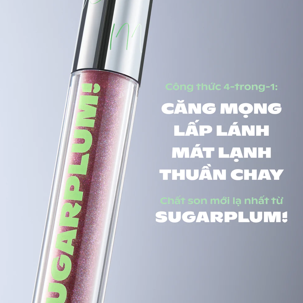 - Sugarplum Mintyice Sparking Gloss là dòng son bóng có nhũ thuần chay đa sắc, tạo hiệu ứng môi căng mọng lấp lánh, cho nền môi mờ ảo, thu hút ánh nhìn