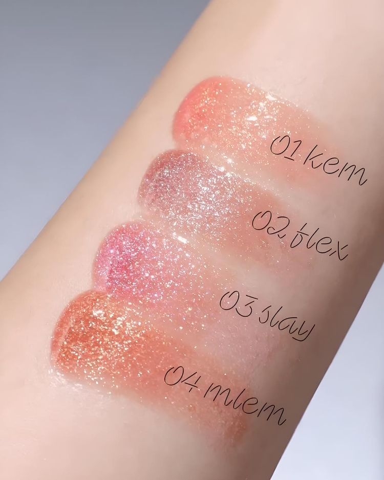 Dạng nước chứa nhũ đa sắc, mướt nhẹ trên môi, không gây dính hay nặng môi, mang lại cảm giác thoải mái khi thoa, cho đôi môi căng mọng, lấp lánh tức thì