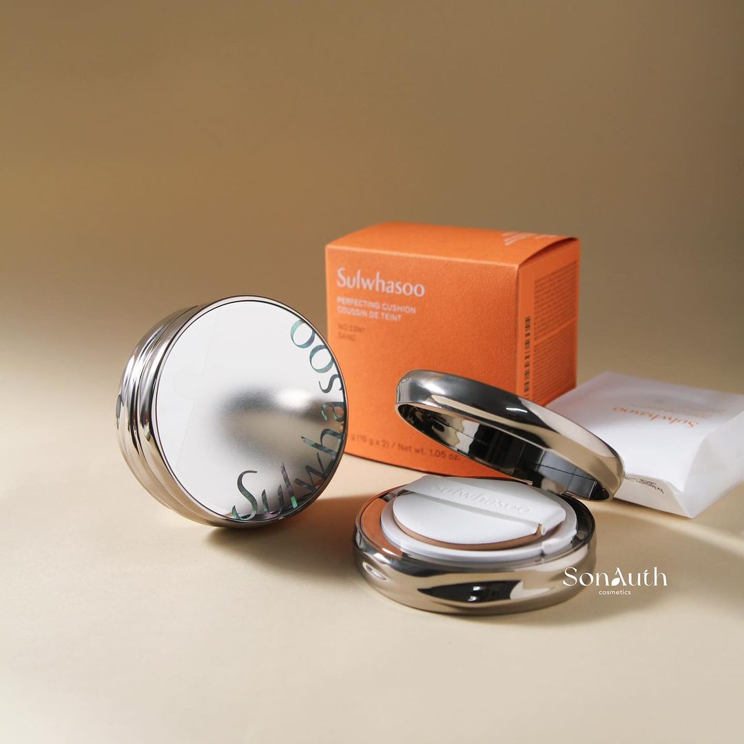- Sulwhasoo Perfecting Cushion Coussin De Teint là dòng cushion cao cấp với sự khác biệt ở công nghệ độc quyền Slimfitcover™ cho lớp nền siêu tiệp da, như đây chính là làn da bạn chứ không phải trang điểm
