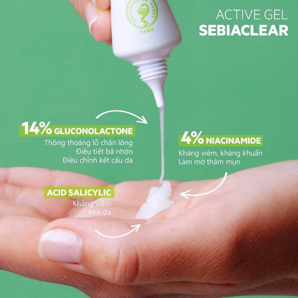 Kem Dưỡng Giảm Mụn, Kiểm Soát Dầu SVR Sebiaclear Active với công thức chứa 14% Gluconolactone và Acid salicylic giúp cải thiện kết cấu da, giảm vết thâm, làm thông thoáng lỗ chân lông, làm giảm và ngăn chặn sự hình thành của mụn. 4% Niacinamide (Vitamin B3) giúp hạn chế sự sinh trưởng của vi khuẩn làm dịu vết đỏ.