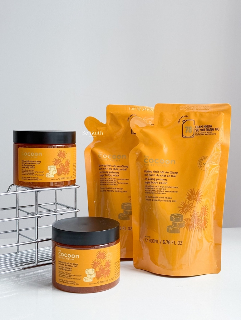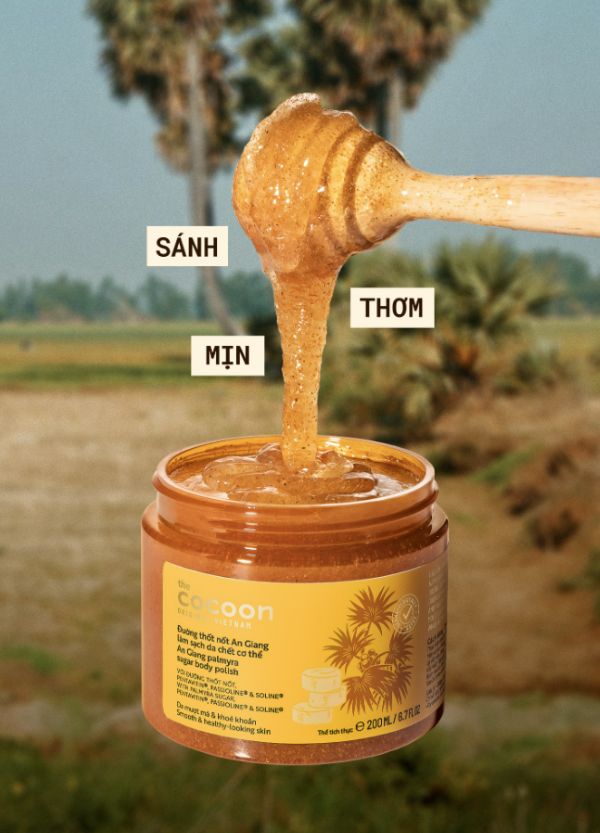 Đường Thốt Nốt An Giang Cocoon tẩy tế bào da chết cơ thể mang lại làn da mượt mà, đồng thời dưỡng ẩm sâu và củng cố hàng rào tự nhiên của da.
