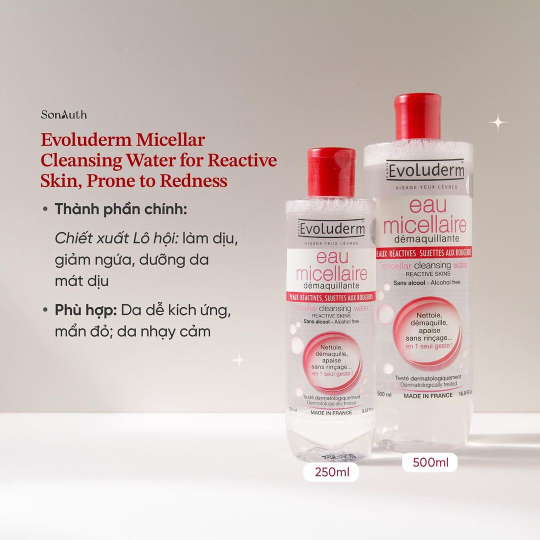 Evoluderm Micellar Cleansing Water for Reactive Skin, Prone to Redness là nước tẩy trang quốc dân với đủ các tiêu chí: nhẹ dịu, làm sạch hiệu quả, mức giá hợp lý.