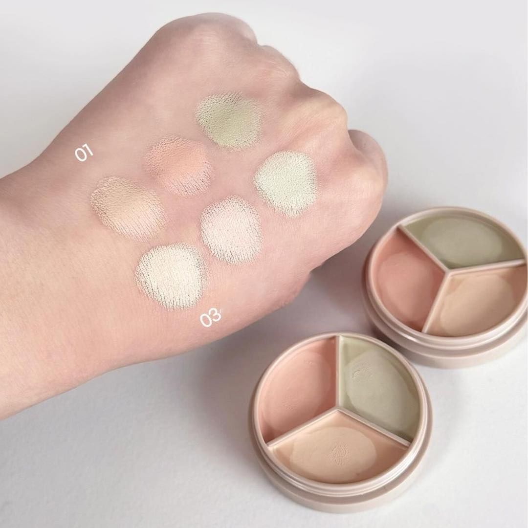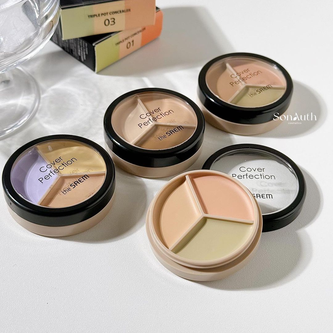 - The Saem Cover Perfection Triple Pot Concealer là che khuyết điểm dạng hũ có thiết kế 3 ô siêu nhỏ gọn thoải mái bỏ trong túi