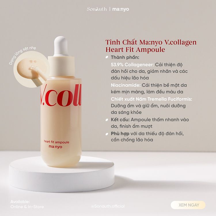 - Ma:nyo V.collagen Heart Fit Ampoule là một dóng serum đa năng với khả năng chống lão hóa, nuôi dưỡng làn da, cải thiện sức khỏe của da