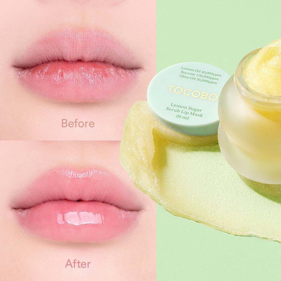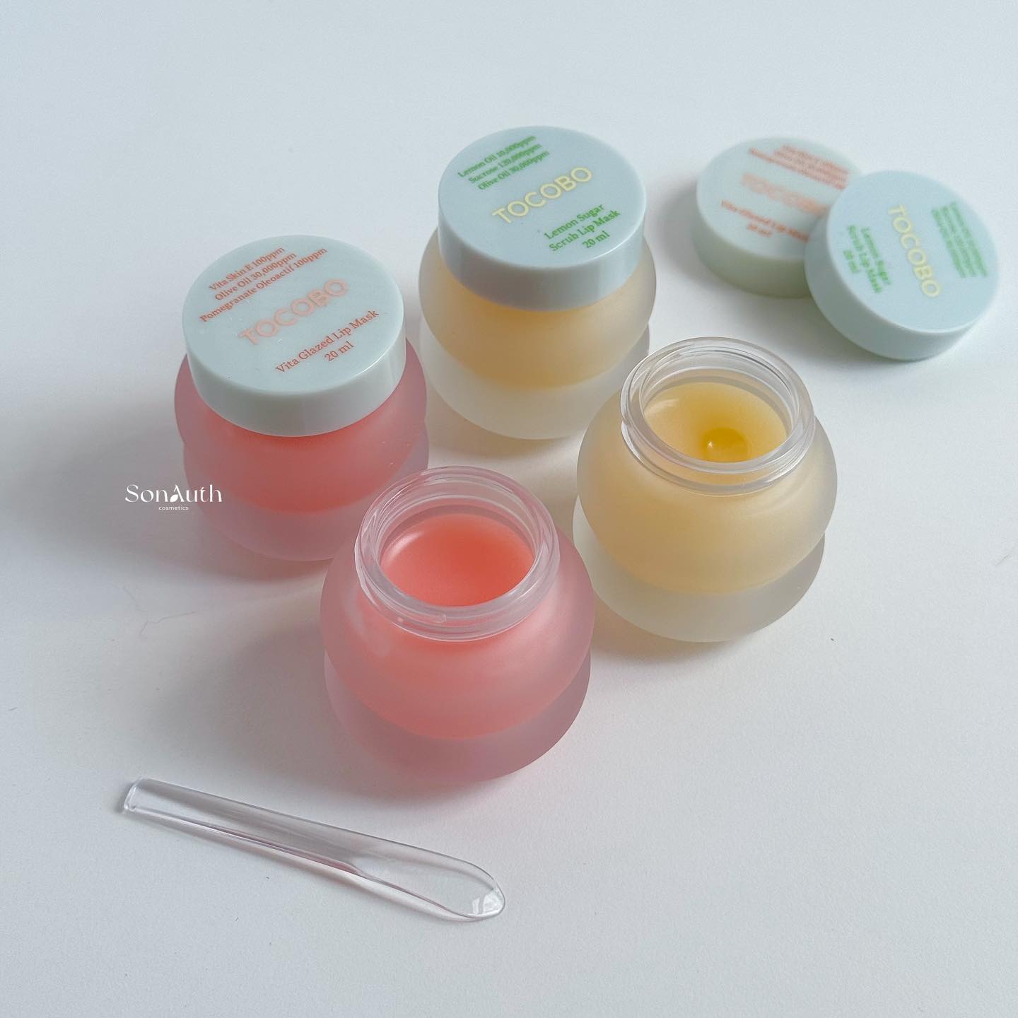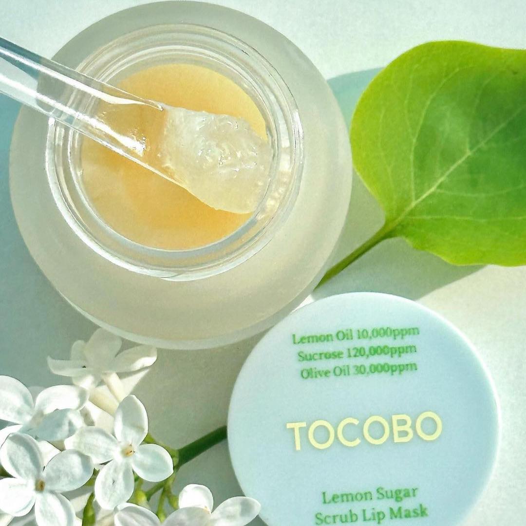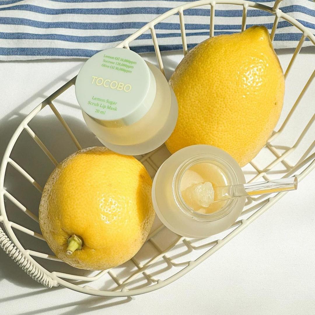 - Tocobo Lemon Sugar Scrub Lip Mask là dòng mặt nạ ngủ môi có hạt tẩy da chết nhẹ nhàng để loại bỏ tình trạng nứt nẻ, khô tróc môi, đồng thời tăng cường độ ẩm tức thì, giúp môi căng mọng