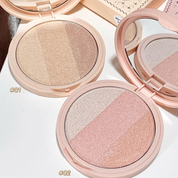 - Hộp phấn kết hợp 3 màu nhũ khác nhau bạn có thể dùng riêng hoặc mix tùy thích tạo hiệu ứng bắt sáng đa chiều và phù hợp với phong cách makeup riêng