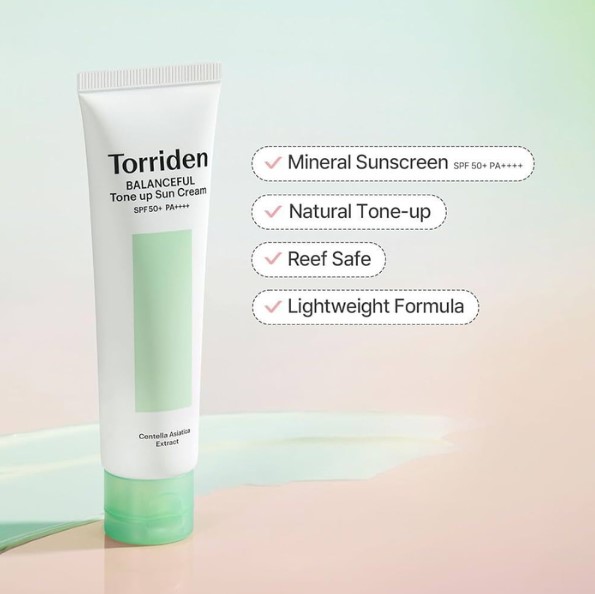 - Torriden Balanceful Cica Tone Up Sun Cream là kem chống nắng khoáng chất (vật lý) với chỉ số SPF50+ PA++++ bảo vệ da toàn diện, mạnh mẽ