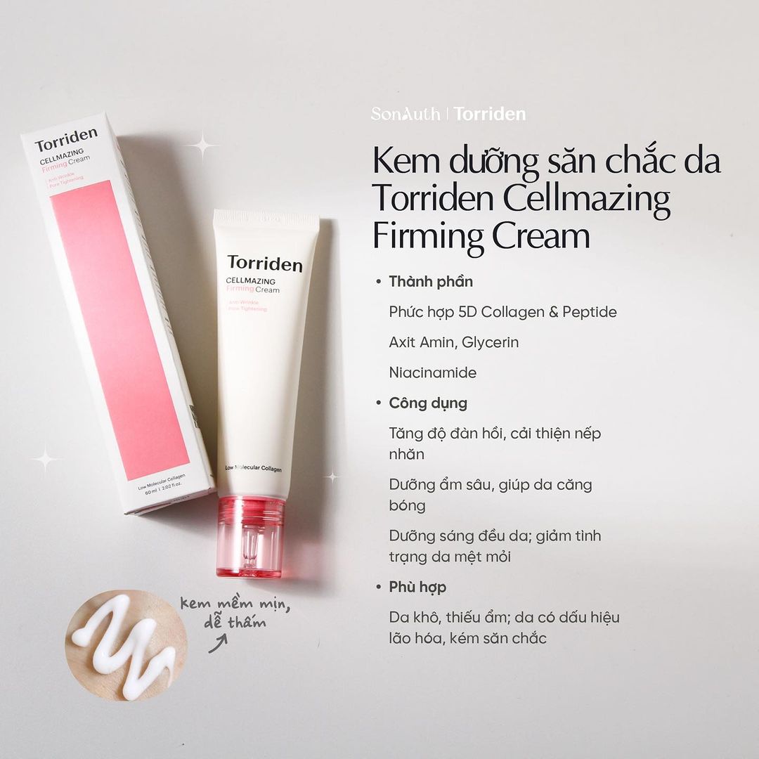 - Torriden Cellmazing Firming Cream là kem dưỡng săn chắc da và giúp chống lão hóa mạnh mẽ