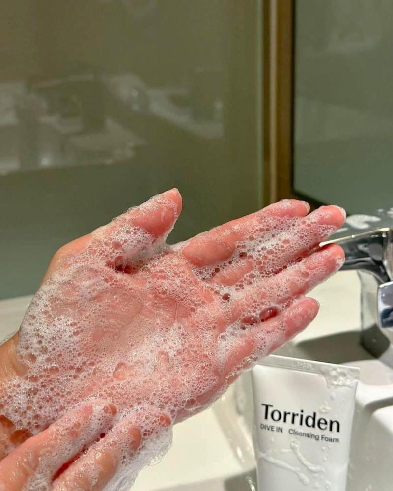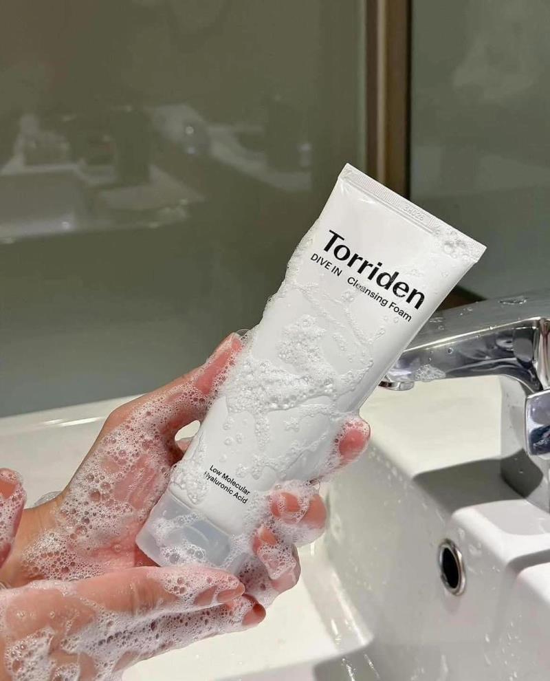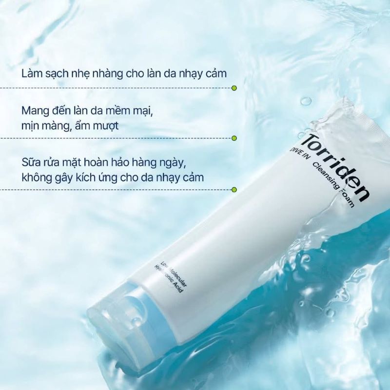 - Torriden DIVE-IN Low Molecular Hyaluronic Acid Cleansing Foam là sữa rửa mặt thuần chay, có độ pH 5.5 cân bằng, không để lại cặn bẩn và không làm khô da