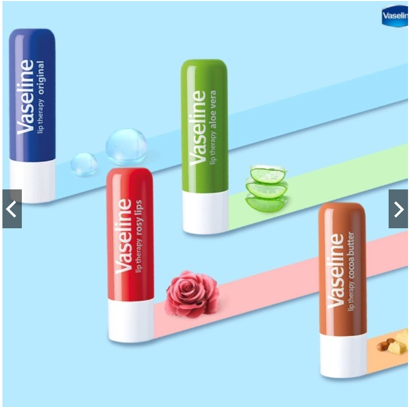 Son dưỡng môi Vaseline là một sản phẩm lý tưởng dành riêng cho việc dưỡng môi. Sản phẩm có hương thơm trái cây tự nhiên, nhẹ nhàng, thành phần chính làm từ mỡ khoáng tinh khiết 100%, mật ong, các vitamin và hoàn toàn lành tính. Đôi môi của bạn sẽ luôn mềm mịn, đầy quyến rũ. Son dưỡng Vaseline có thể được dùng như son lót, trước khi trang điểm môi, giúp cách li da môi với hóa chất son môi, giúp son bám màu lâu và căng mọng một cách tự nhiên.
