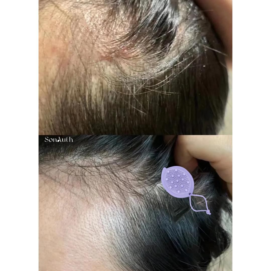 Cầm lược dùng lực nhẹ để chải từ da đầu xuôi xuống đuôi tóc. Mát-xa nhẹ nhàng trên da đầu theo từng vùng để loại bỏ các tế bào sừng chết
