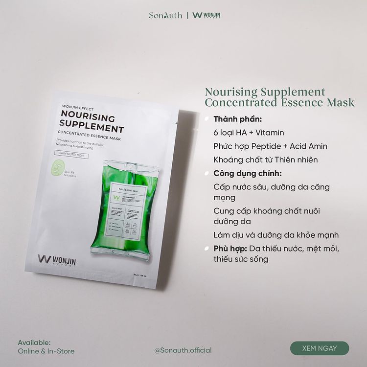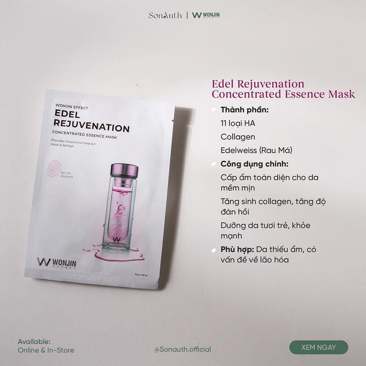 - Dòng mặt nạ Wonjin Effect Concentrated Essence Mask sở hữu chất liệu mask Skin Fit siêu mỏng, ôm sát vào da và tăng tính thẩm thấu