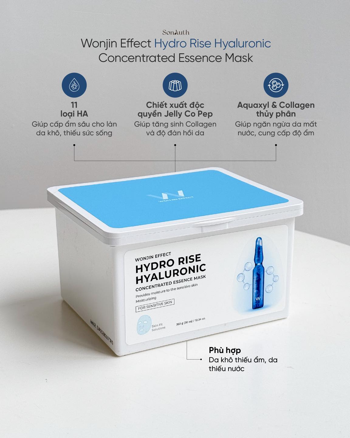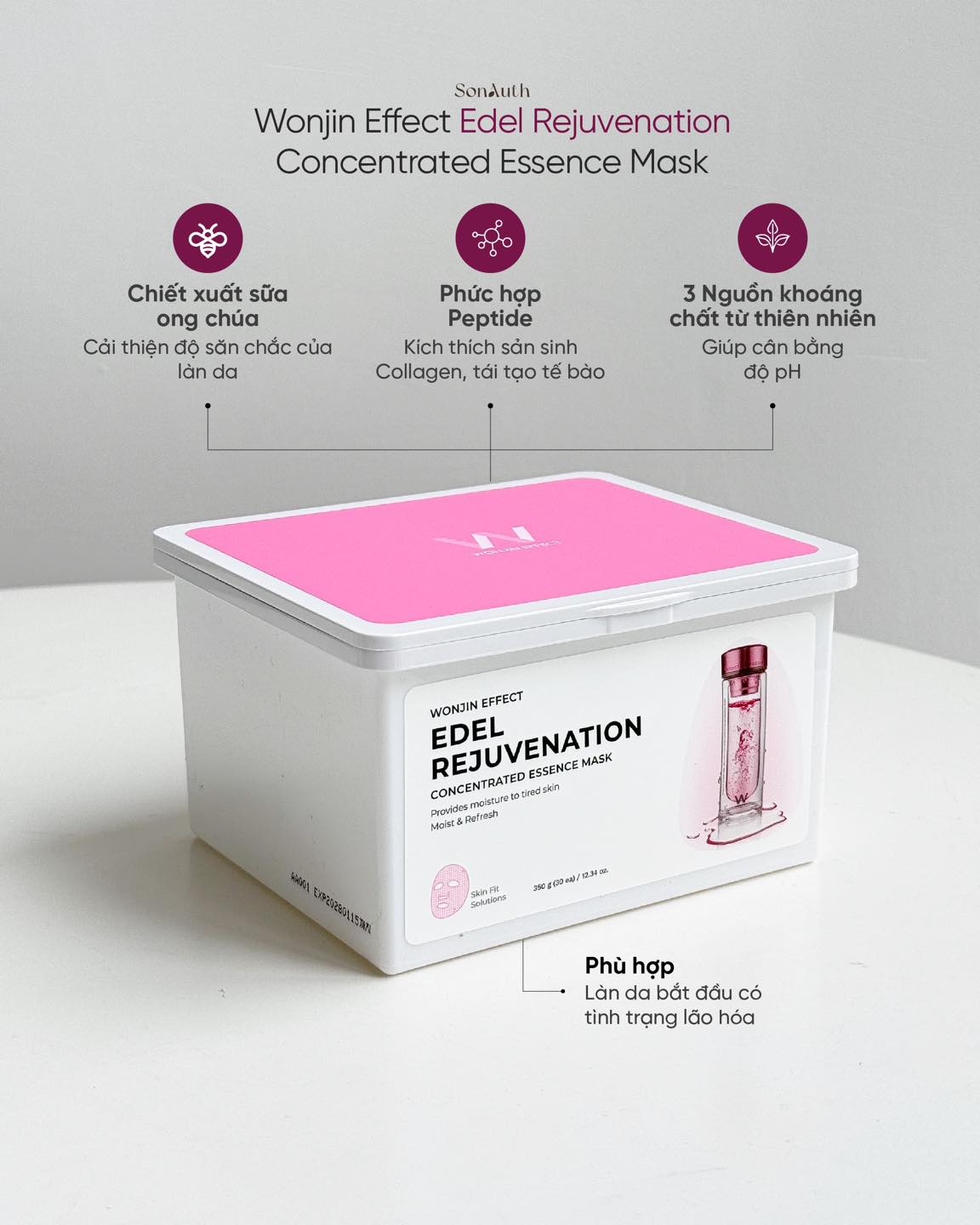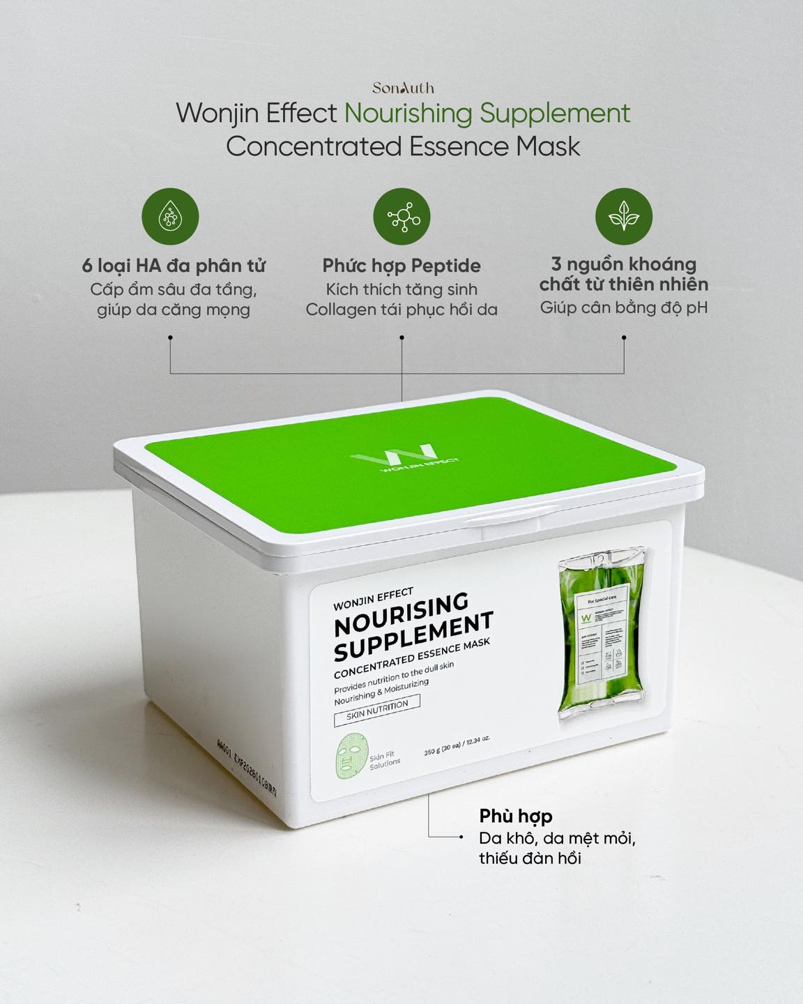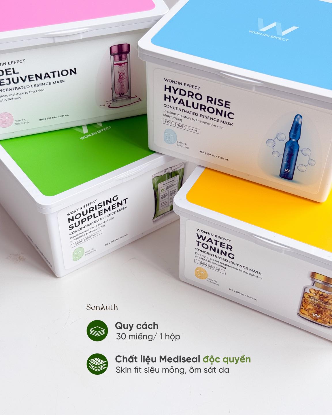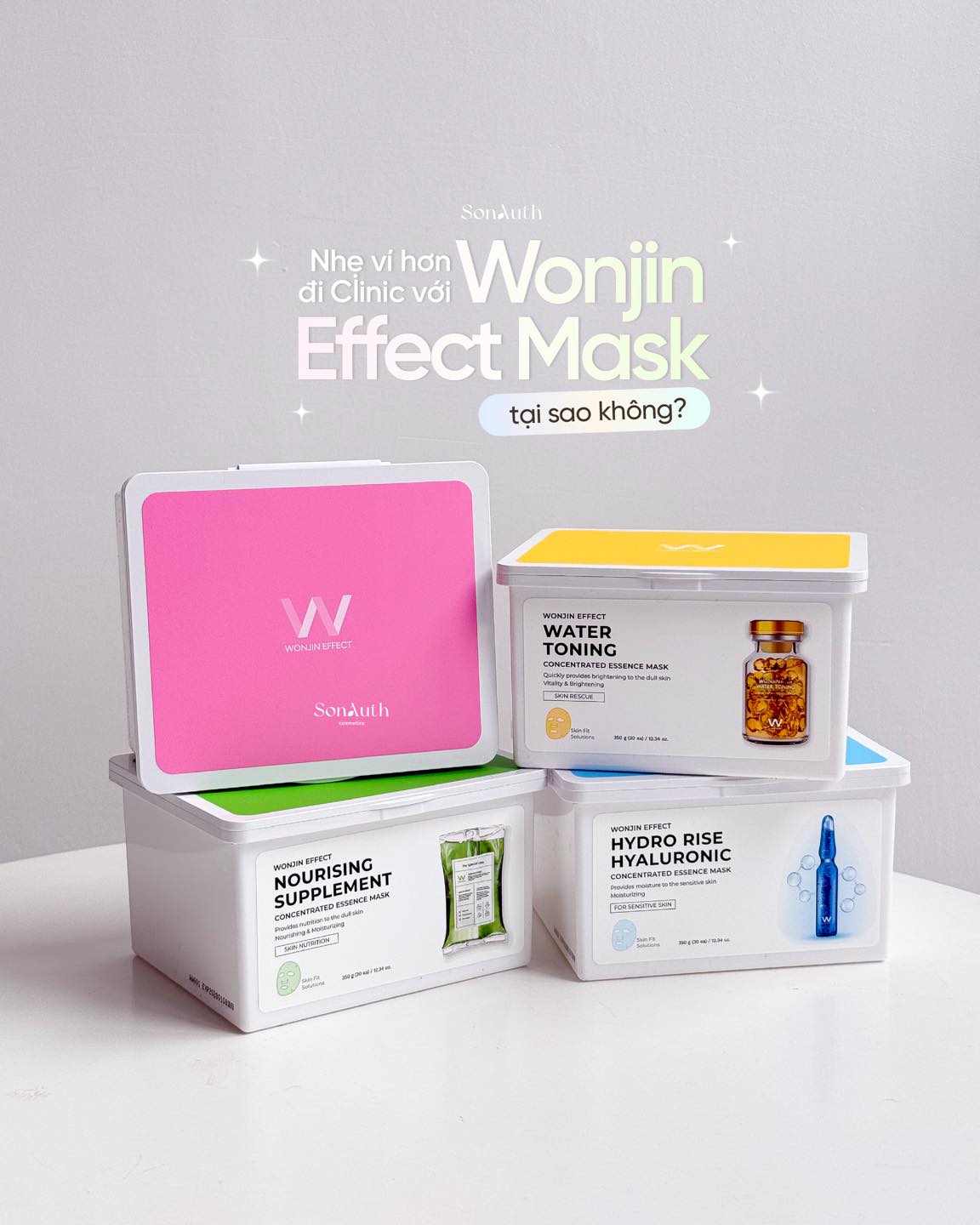- Dòng mặt nạ Wonjin Effect Concentrated Essence Mask sở hữu chất liệu mask Skin Fit siêu mỏng, ôm sát vào da và tăng tính thẩm thấu